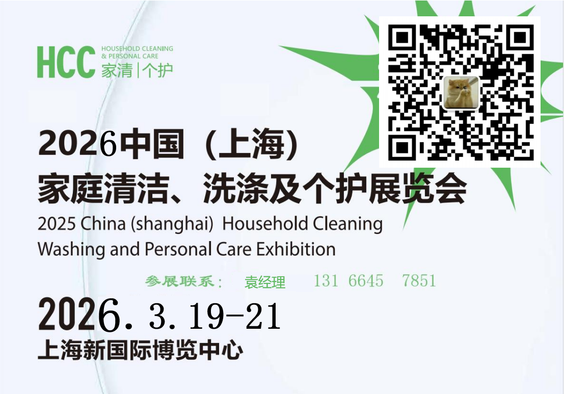 2026CCF上海家清、洗滌及個(gè)護(hù)展2026上海日化展時(shí)間:2026年3月19-21日2026上海個(gè)護(hù)展地址:上海新國(guó)際博覽中心E1館參展聯(lián)系:袁經(jīng)理13166457851(同V)