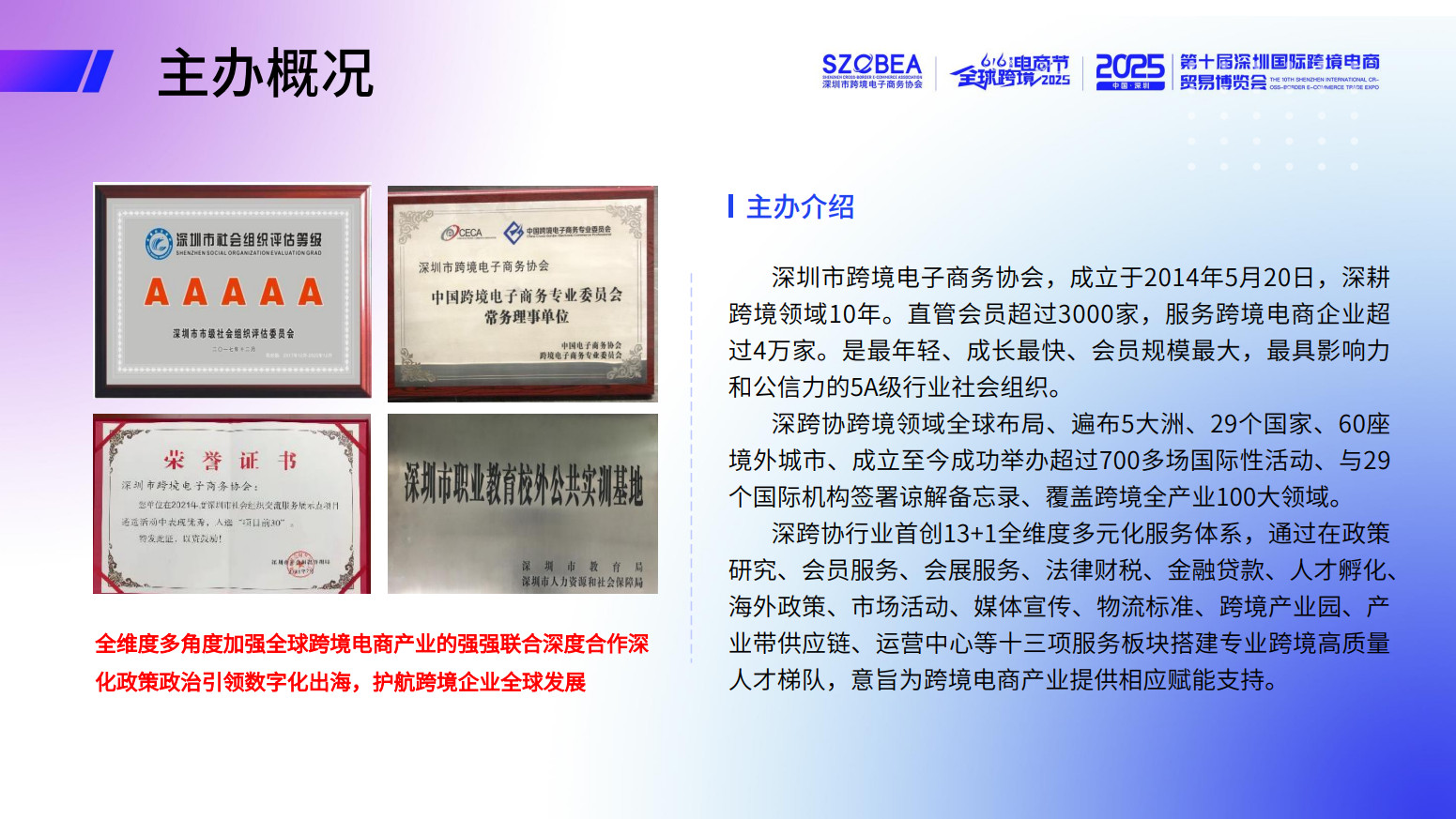 2025年第十屆深圳國際跨境電商貿易博覽會無疑是一個不容錯過的行業盛會。它不僅是跨境電商企業展示自我的舞臺,更是一個交流思想與經驗、開拓市場與合作機會的重要平臺。隨著這一盛會的臨近,我們誠摯邀請各界朋友前來參觀、交流和合作,共同推動全球跨境電商事業的發展。