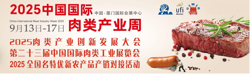 2025年9月15-17日,中國國際肉類產業周暨第二十三屆中國國際肉類工業展覽會將在廈門國際會展中心舉辦。展期3天,展覽面積將超100000平方米,預計將有國內外2000余家企業參展,100000+專業觀眾蒞臨現場洽談。