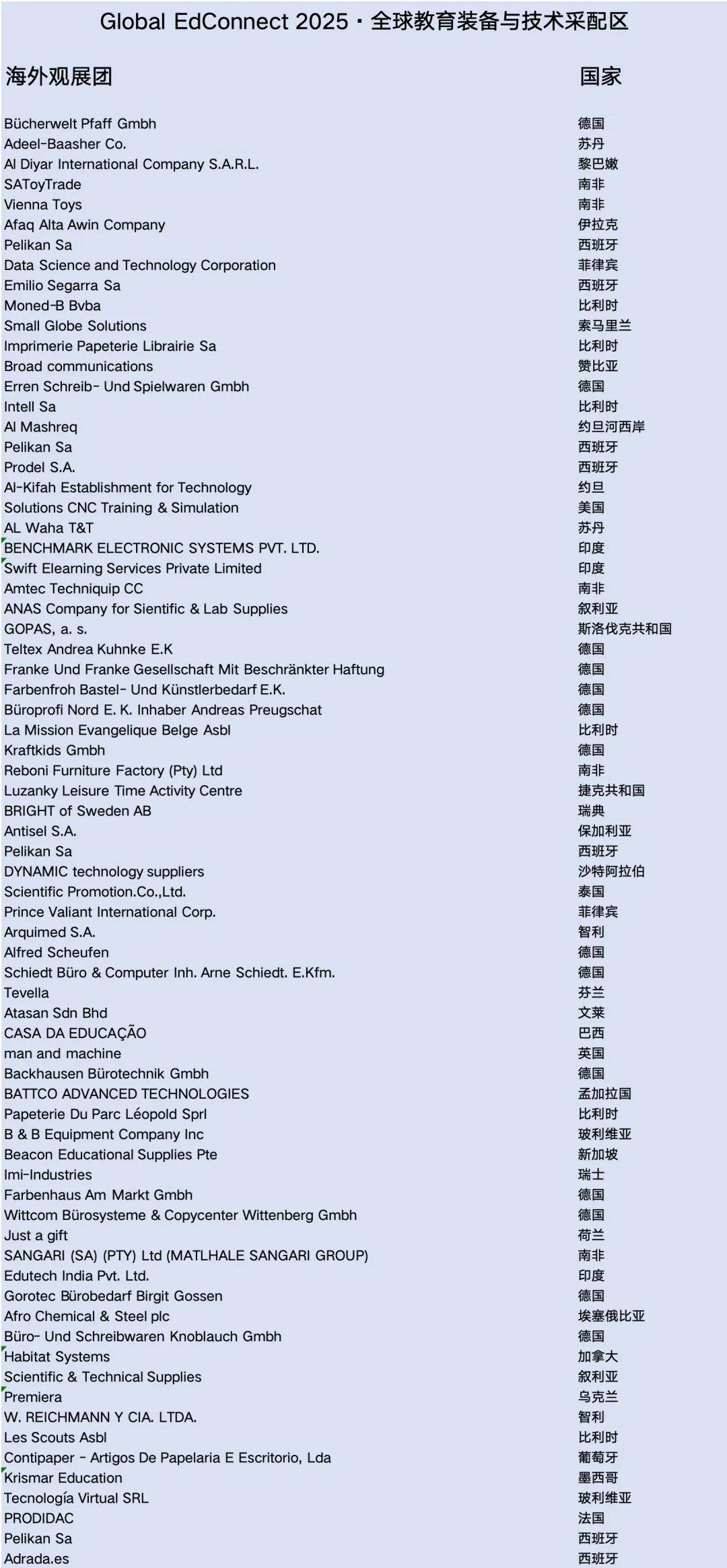WORLDDIDAC ASIA 2025以打造成為中國教育裝備產業(yè)面向全球的綜合型采購平臺為目標,匯聚了美洲、歐洲、東南亞、中東、澳洲等500+核心教育裝備市場代理商與經(jīng)銷商,覆蓋全球70%教育裝備市場,更創(chuàng)新引入“Global EdConnect2025全球教育裝備采配區(qū)”等立體化對接活動。