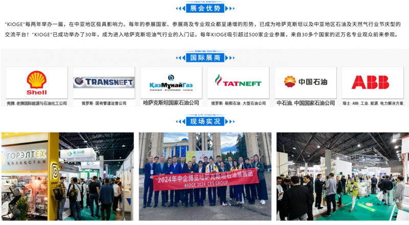 優(yōu)勢:進(jìn)入中亞及哈薩克斯坦油氣行業(yè)的入門證,在中亞地區(qū)極具影響力,成功舉辦了30年,每年吸引超過500家企業(yè)參展,來自30多個(gè)國家的萬余名專業(yè)觀眾前來。