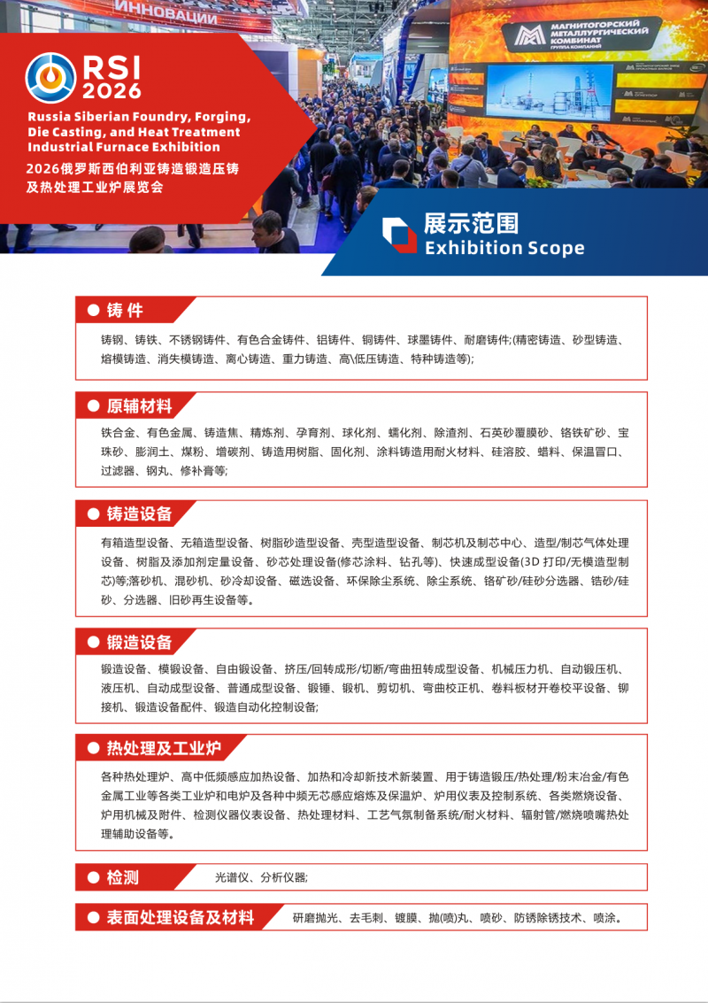 2026俄羅斯西伯利亞鑄造鍛造壓鑄及熱處理工業(yè)爐展覽會(huì)