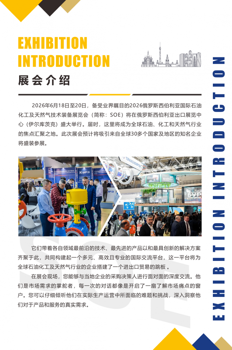 2026年6月18日至20日,一場石油化工及天然氣技術裝備展覽會將在俄羅斯西伯利亞出口展覽中心(伊爾庫茨克)舉辦。屆時,這里將吸引全球多個國家及地區的企業參展。