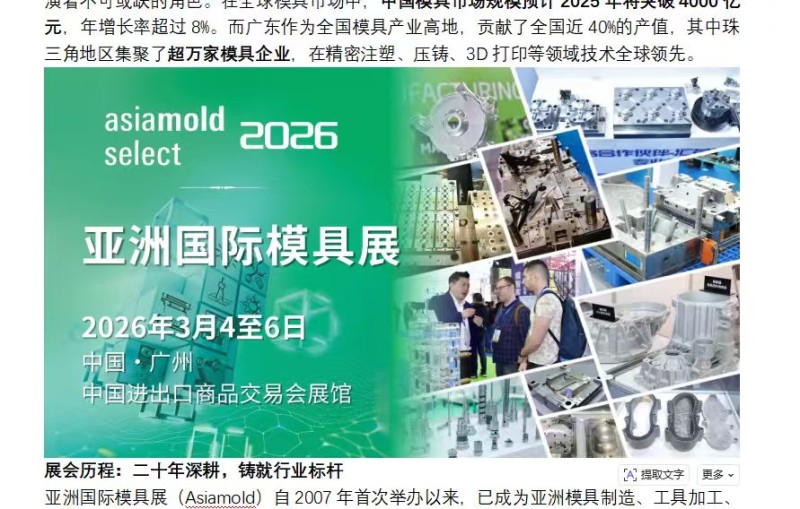 國內哪場模具展值得關注?2026亞洲國際模具展以二十周年盛會引領行業未來