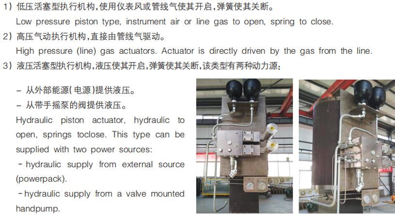 4、執行機構是壓力傳感元件和過壓控制閥之間重要的元件。 它的優良設計使在延長使用期后仍保持快速可靠。 在過壓保護系統(HIPPS)中可使用三種類型執行機構: