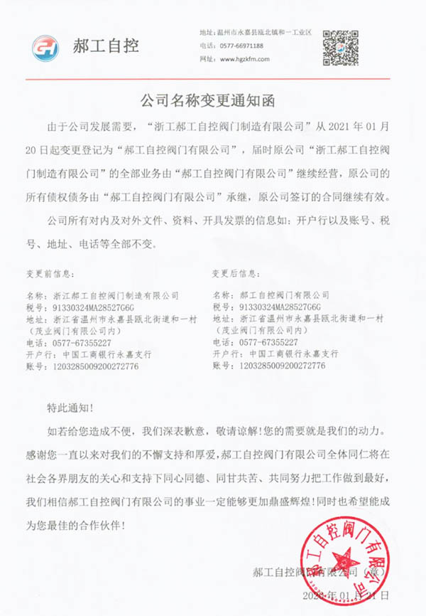 郝工自控閥門有限公司成立于2017年,現(xiàn)注冊資金3088萬元,致力于研發(fā)、解決工業(yè)自動化自控閥的生產(chǎn)廠家。公司立足于有著中國泵閥之鄉(xiāng)美稱的-溫州市永嘉縣甌北鎮(zhèn),業(yè)務覆蓋國內(nèi)化工、石油、電廠、鋼廠、污水處理等眾多領域。目前公司擁有900多平方標準工業(yè)廠房,設備精良,滿足各類自控閥的生產(chǎn)需求。